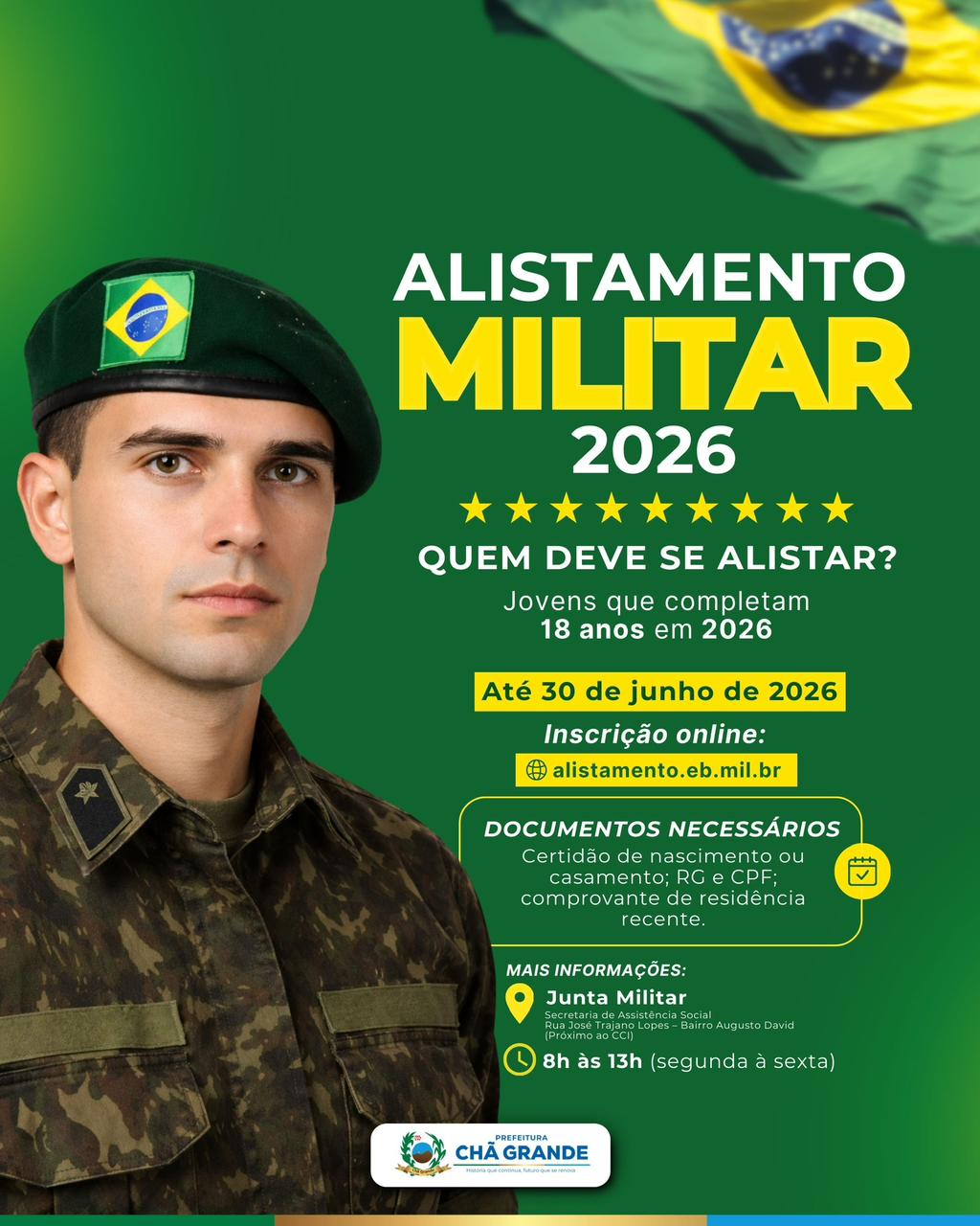 Os jovens que completam 18 anos em 2026 devem ficar atentos, já que devem realizar o alistamento militar obrigatório. O calendário estabelece o dia 30 de junho como prazo final para o processo de alistamento militar este ano.
