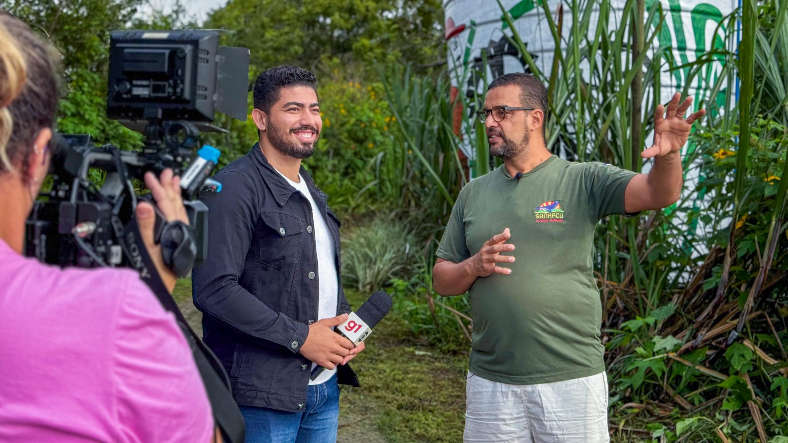A pauta seguiu para o Engenho Sanhaçu, na zona rural de Chã Grande, dentro da Rota Ecoturística. No empreendimento, a equipe foi recebida pelo empresário Oto Barreto, proprietário do local. Ao longo da conversa, Oto apresentou detalhes sobre o trabalho da Sanhaçu, que une a sustentabilidade e a geração de renda, seja através dos produtos comercializados pela marca, como a Cachaça Sanhaçu, ou pelo turismo.