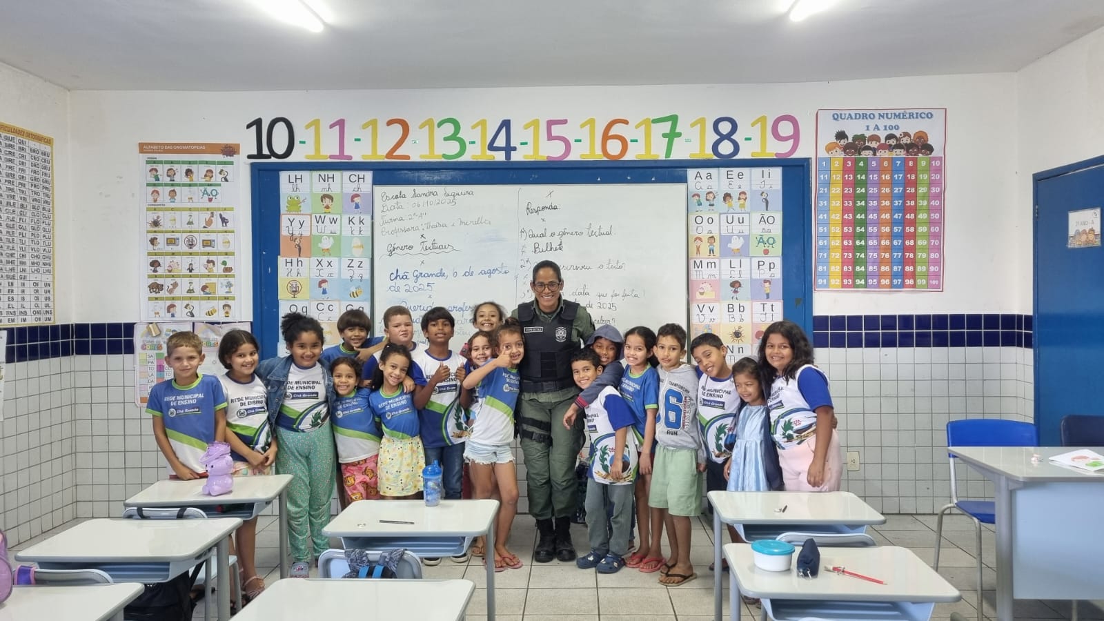 As seis turmas do 1º ao 3º anos do ensino fundamental da Escola Municipal Sandra Siqueira de Macedo, localizada no bairro Morada Nova, em Chã Grande, passaram a receber a formação do Programa Educacional de Resistência às Drogas e à Violência (Proerd), da Polícia Militar. O curso, que iniciou nesta segunda-feira (6), seguirá até o fim de novembro, quando as crianças receberão os certificados de formação.