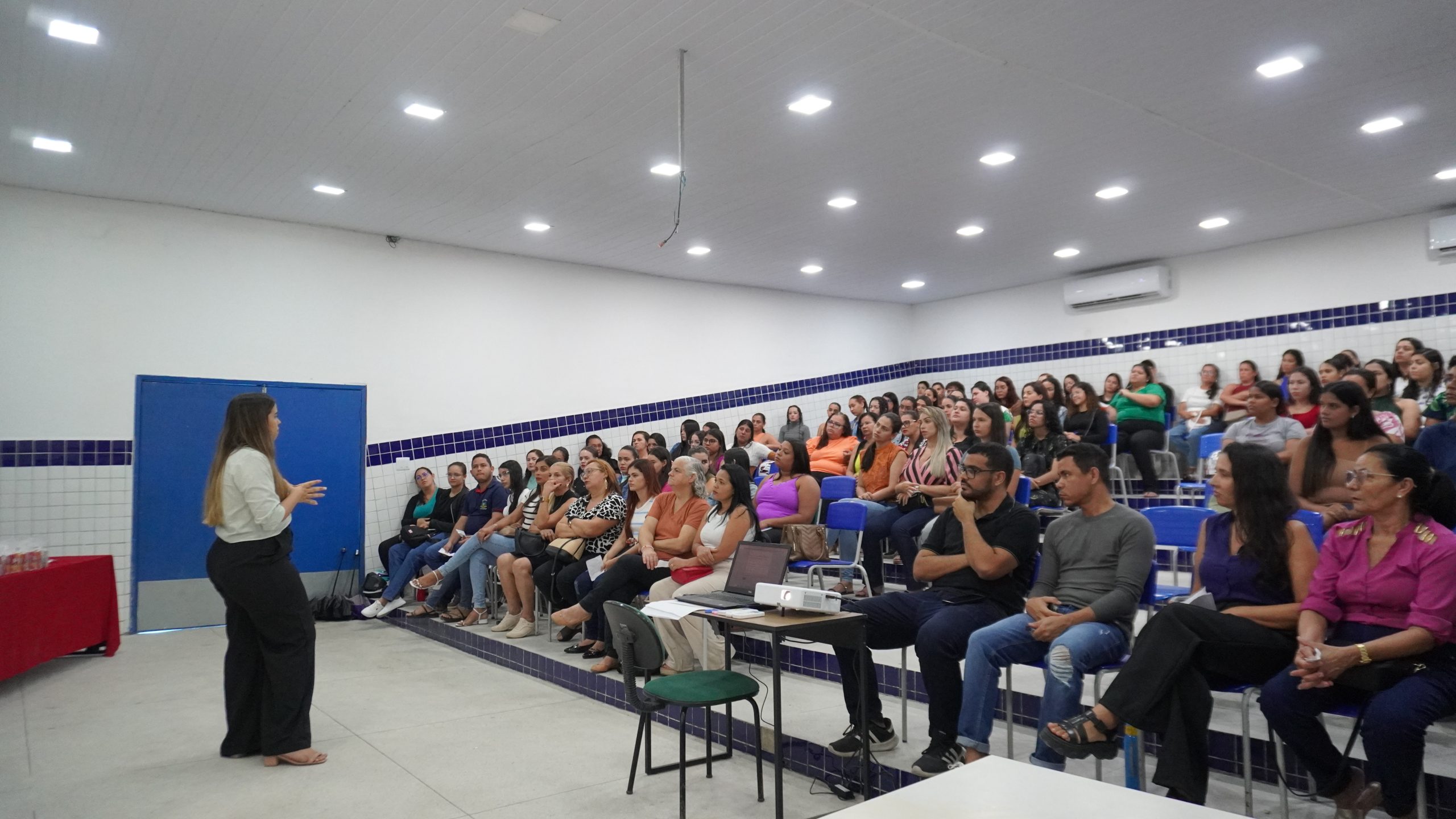 Atenta ao assunto apresentado durante a formação, a profissional de apoio Jadeílma Maria foi uma das participantes do encontro. “É muito importante essa formação, pois a gente repassa para os pais das crianças, e, principalmente, para as crianças”, destaca. “A gente acaba aprendendo também”, complementa.